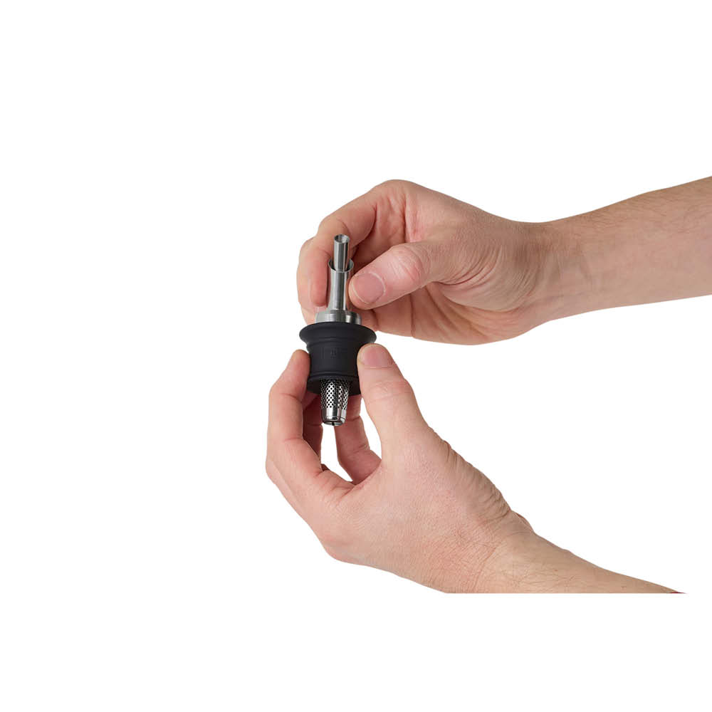 4-fach Funktion: Ausgießer, Tropfenfänger, automatischer Verschluss, integrierter Edelstahlfilter.
