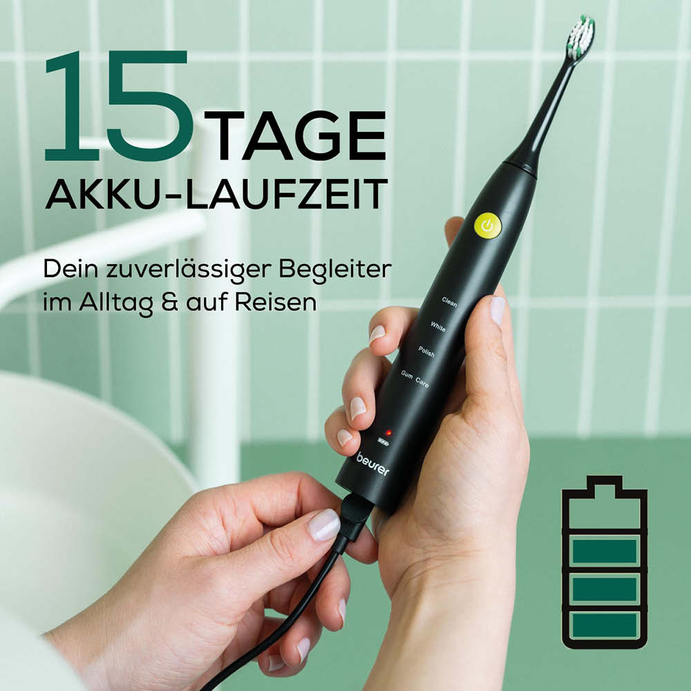 - Vier Reinigungsprogramme (Clean, White, Polish, Gum Care) zur individuelle Anpassung