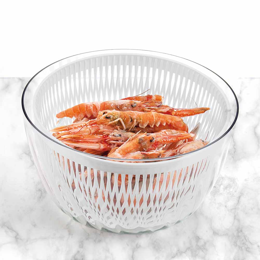 Praktisch und effizient! In der Guzzini Salatschleuder Spin&Store lässt sich der Salat kinderleicht waschen und schleudern und anschließend in der Schüssel auch servieren. Mit dem mitgelieferten Deckel lassen sich Salatreste einfach verschließen und können so auch im Kühlschrank verstaut werden.