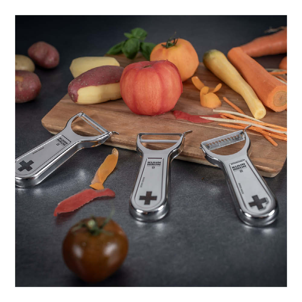 - "Swiss Metallic Peeler" – ein Qualitätsprodukt von Kuhn Rikon, das höchsten Ansprüchen genügt