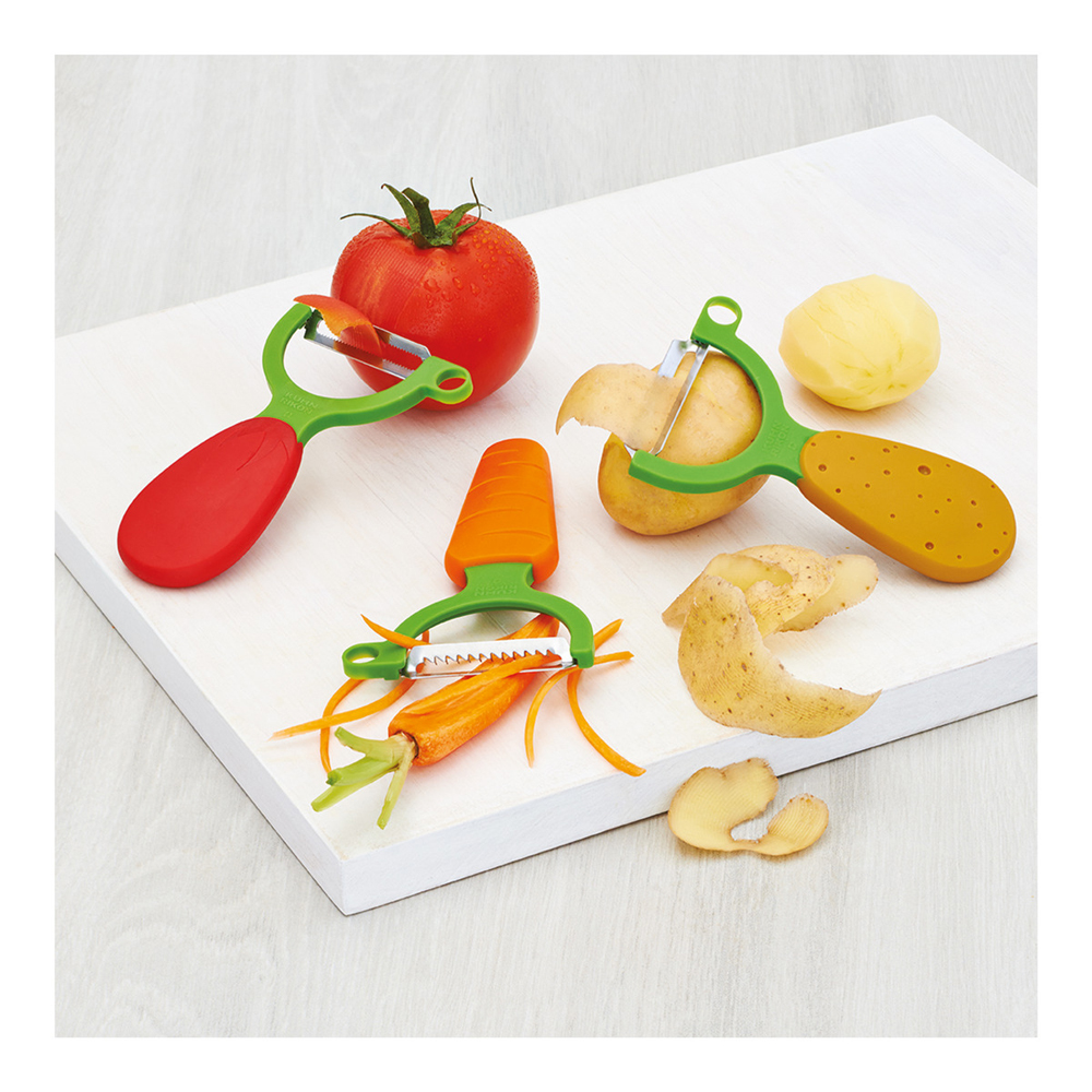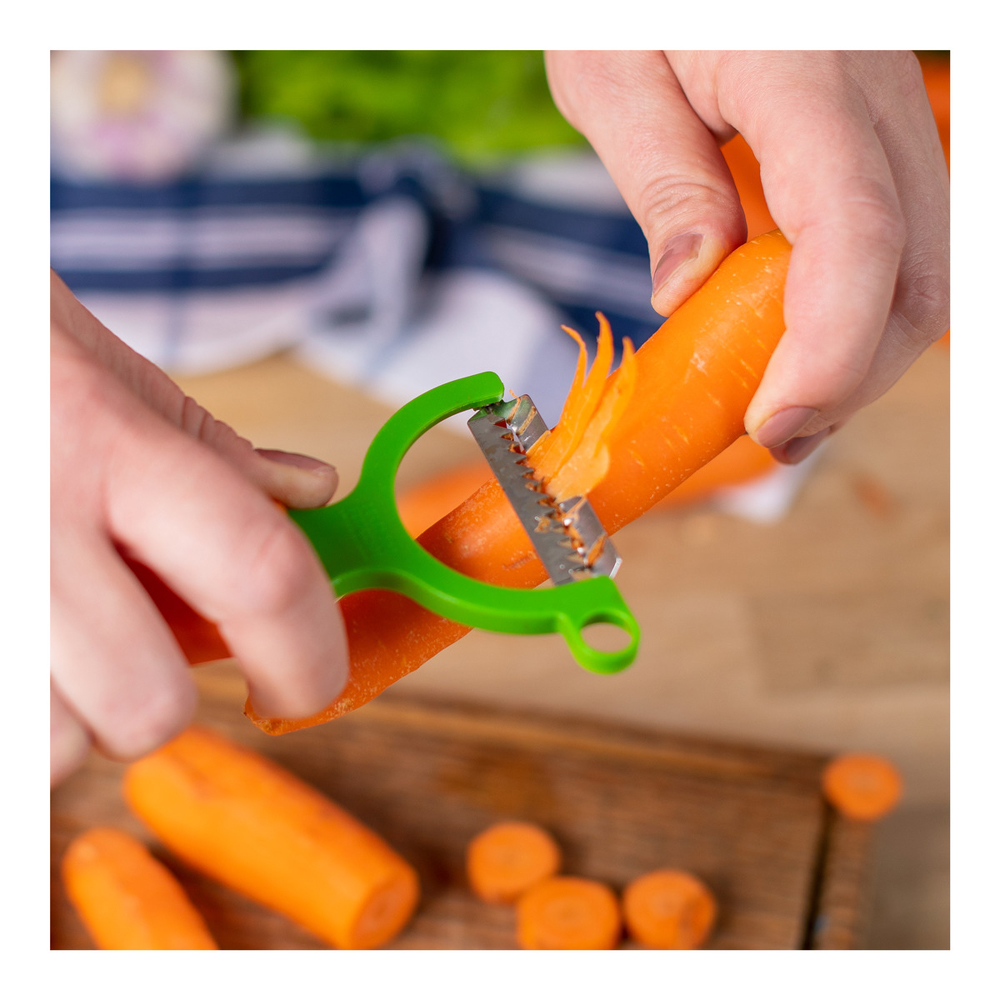 - Schäler im Karottenlook für gleichmäßige Juliennestreifen.