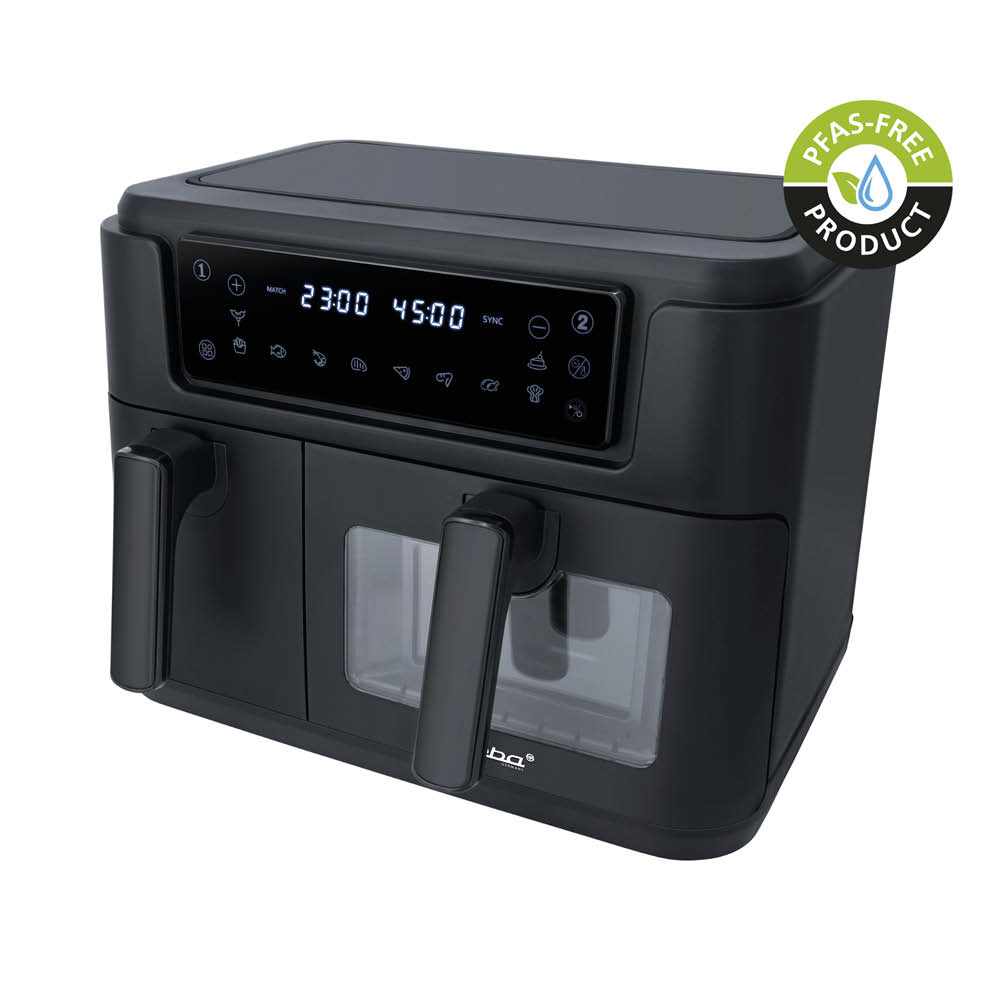 - DUO‑Kochzone in zwei PFAS-freien antihaftbeschichteten Frittierbehältern.
